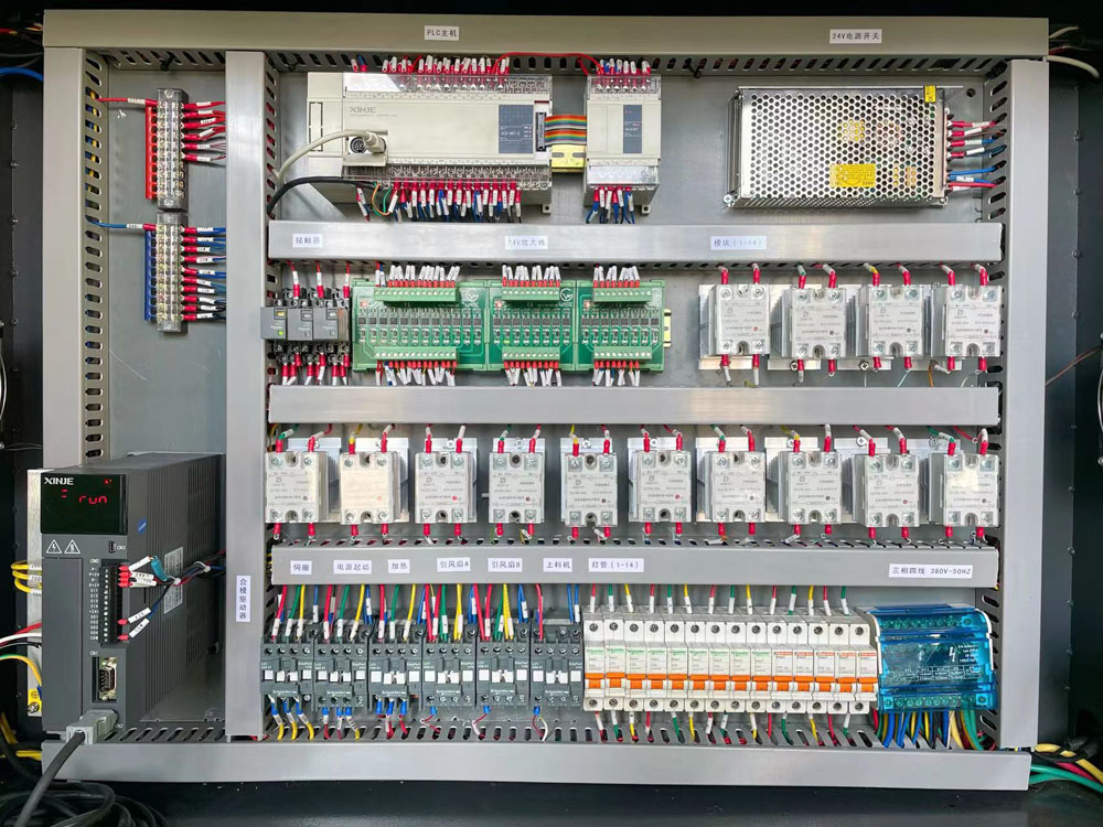 l智能溫控系統(tǒng)搭配瓶坯自轉(zhuǎn)系統(tǒng)和瓶口冷卻系統(tǒng)保障瓶坯加熱均勻不變形,每一根燈管可以單獨控制,控溫精準(zhǔn),方便調(diào)節(jié);